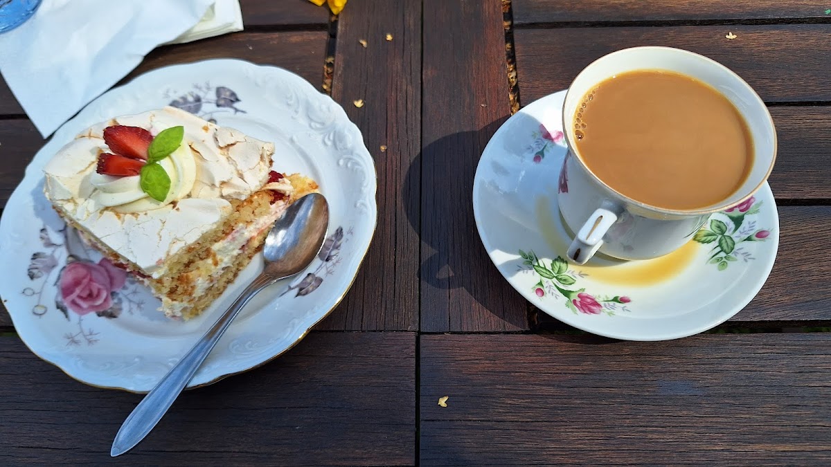 A great cafe with delicious cakes! I loved their cardamom cake. The atmosphere is very friendly and the cafe has a very retro natural environment. There is an art gallery and Maison for local designers and artists. I definitely recommend you to visit this place if you’re ever nearby!